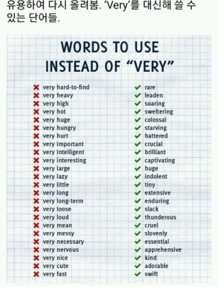 Foreter [모든 글 보기] Very 대신 쓸 수 있는 단어 by foreter 2019. 8. 17. 공유하기 게시글 관리 Foreter 저작자표시 비영리 동일조건 (새창열림) 관련글 리본 묶는 방법 월별로 여행가기 좋은 나라 택시에 휴대폰을 놓고 내렸을 시 대처법 코막힘을 낫게 하는 6단계