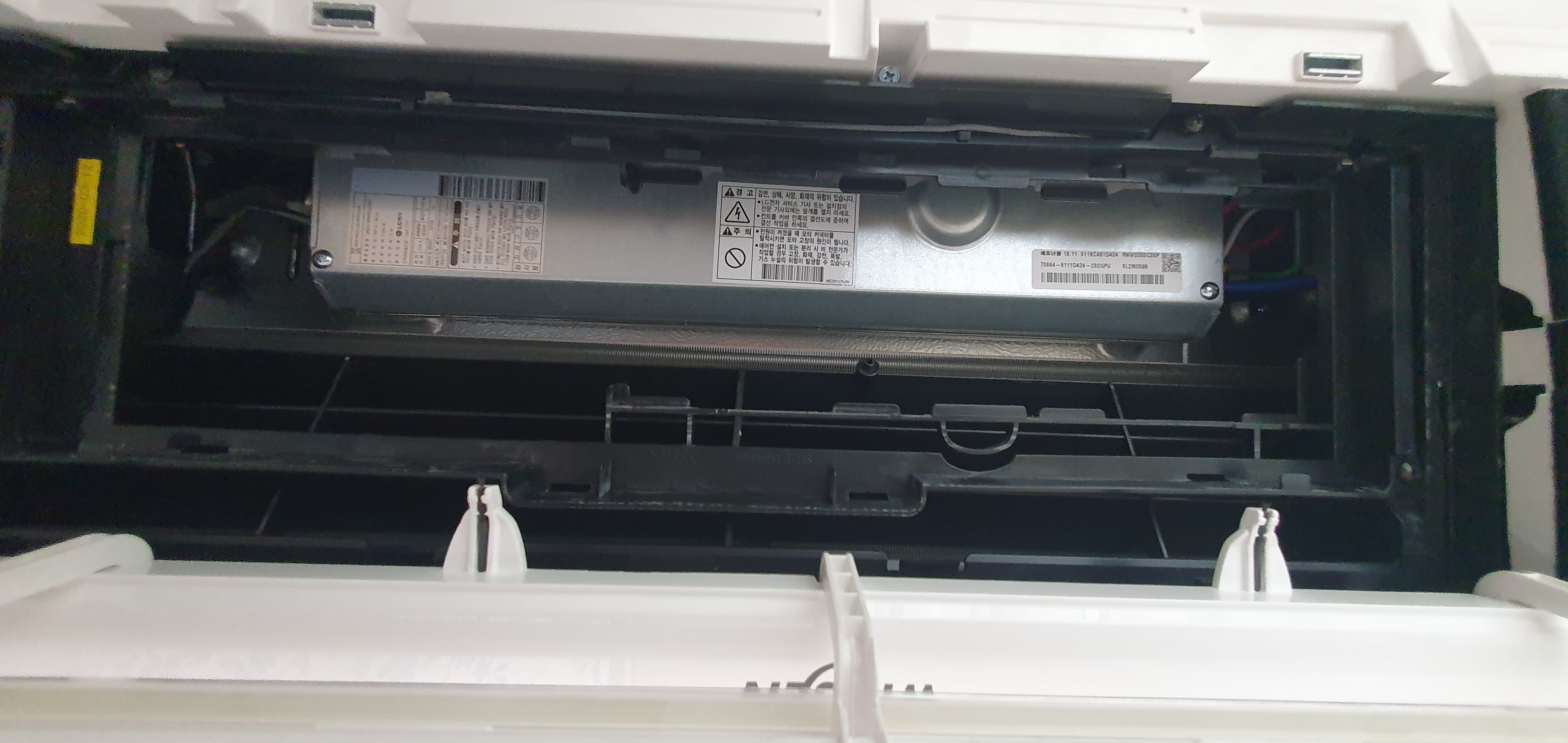 이제 서둘러서 에어컨 전원을 차단(두꺼비집 차단기 내림)하고 에어컨을 뜯어보았다