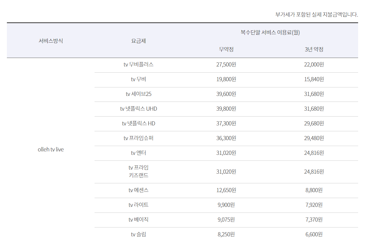 추가회선 TV 요금제