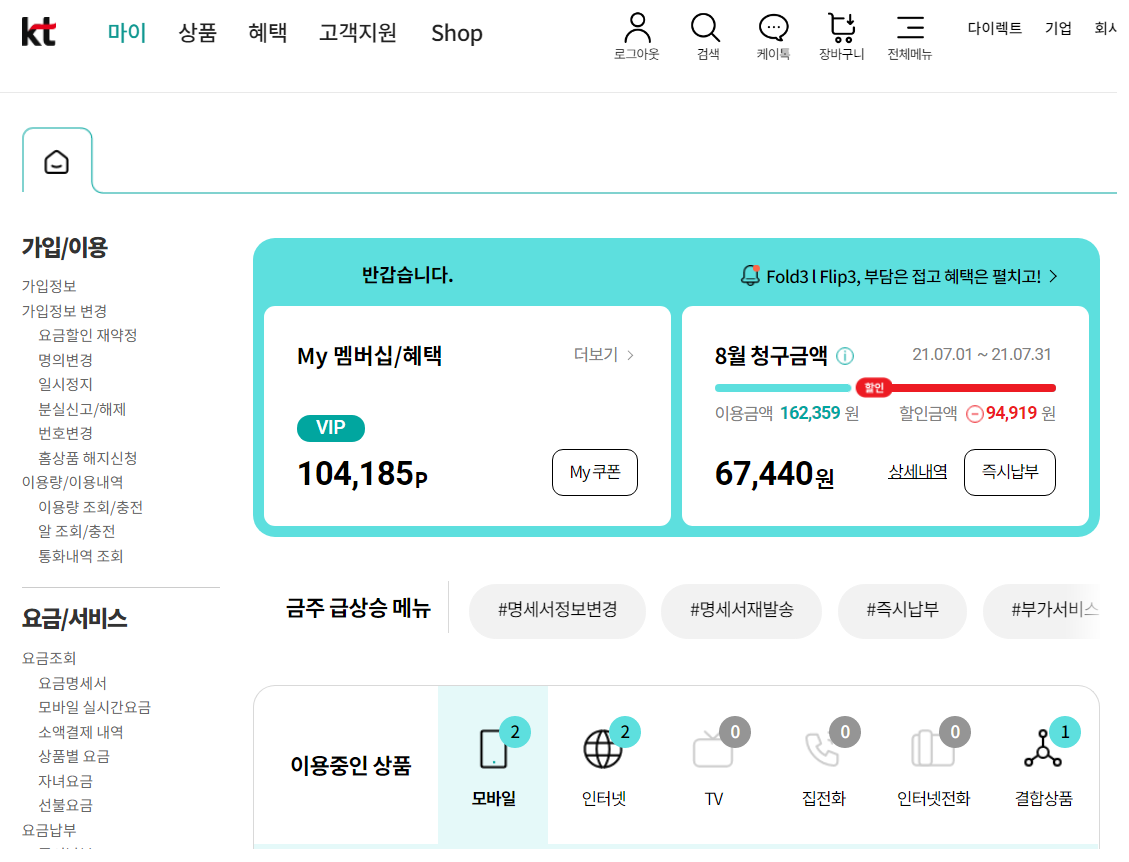 일단 글쓴이는 KT 가족 결합으로 사용 중입니다.