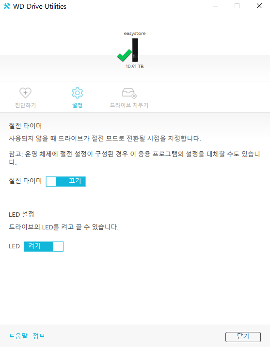 WD에서 제공하는 디스크관리프로그램으로 관리가 된다는 점을 알게 되었습니다.