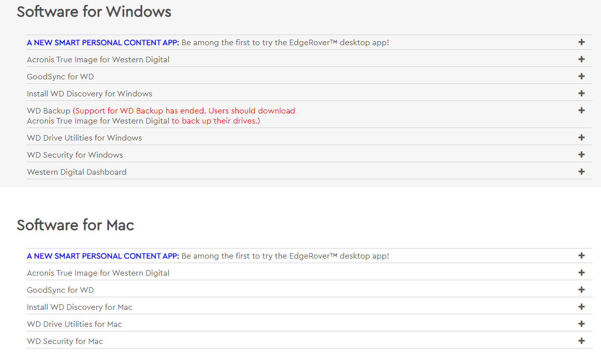 List of all WD firmware and software available for download.