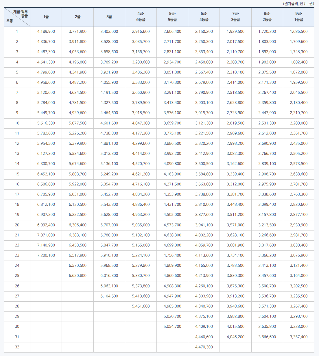 Foreter [모든 글 보기] 2022년 일반직 공무원 봉급표 by foreter 2022. 5. 26. 2022년 일반직공무원과 일반직에 준하는 특정직 및 별정직 공무원 등의 봉급표 2022년 일반직 공무원 봉급표 출처: 인사혁신처 공유하기 게시글 관리 Foreter 저작자표시 비영리 동일조건 (새창열림) 관련글 2022년 경찰 공무원, 소방 공무원 및 의무경찰 봉급표 2022년 전문경력관 봉급표 WD 이지스토어 easystore 외장하드 슬립모드 절전모드 해제 윈도우 바로 가기 키